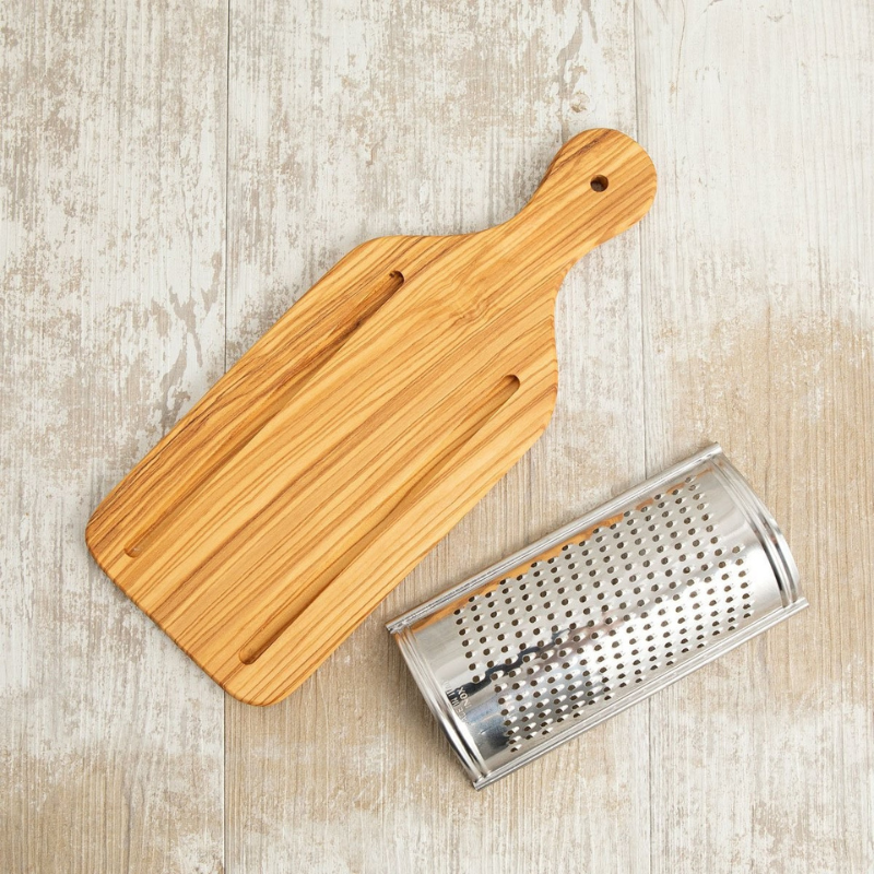 Rifjárn á litlu viðarbretti úr gegnheilum ólífuvið.