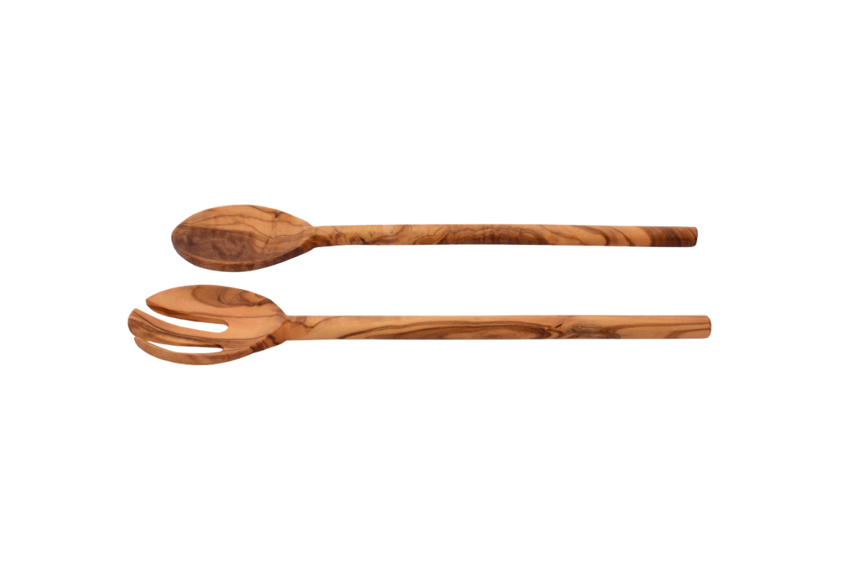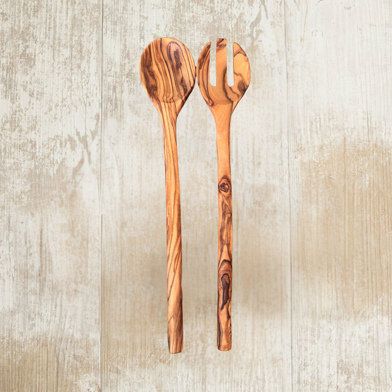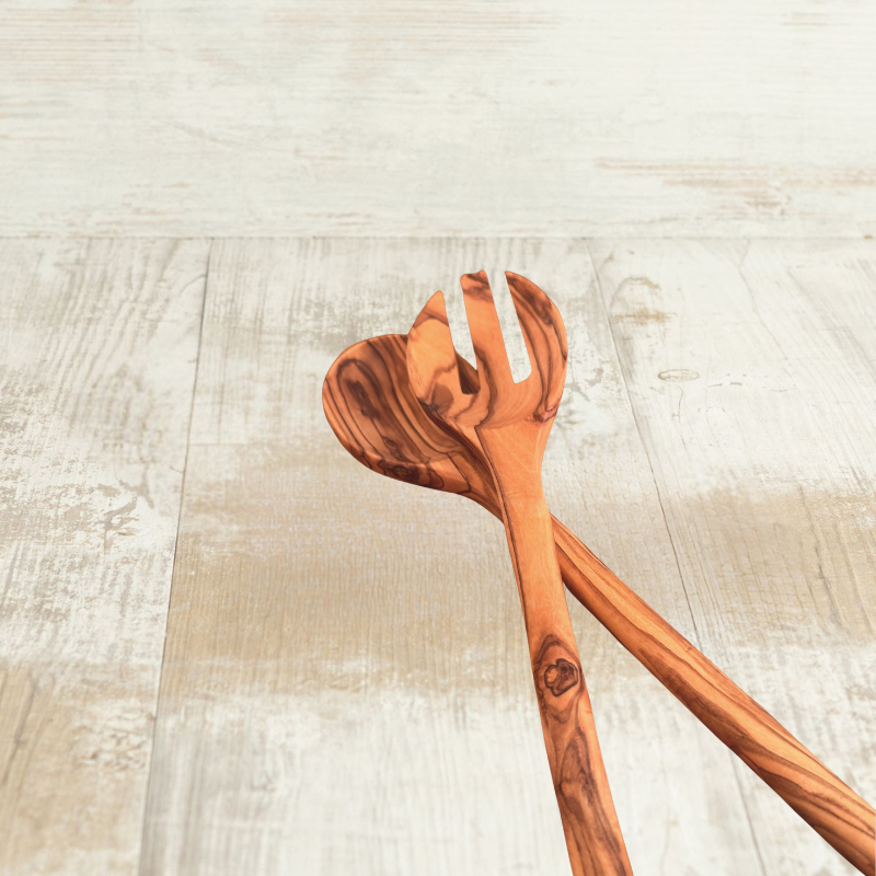 Salatáhöld úr gegnheilum ólífuvið.