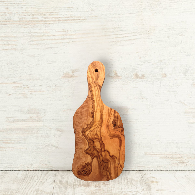 Lítið óreglulegt bretti með handfangi úr gegnheilum ólífuvið.