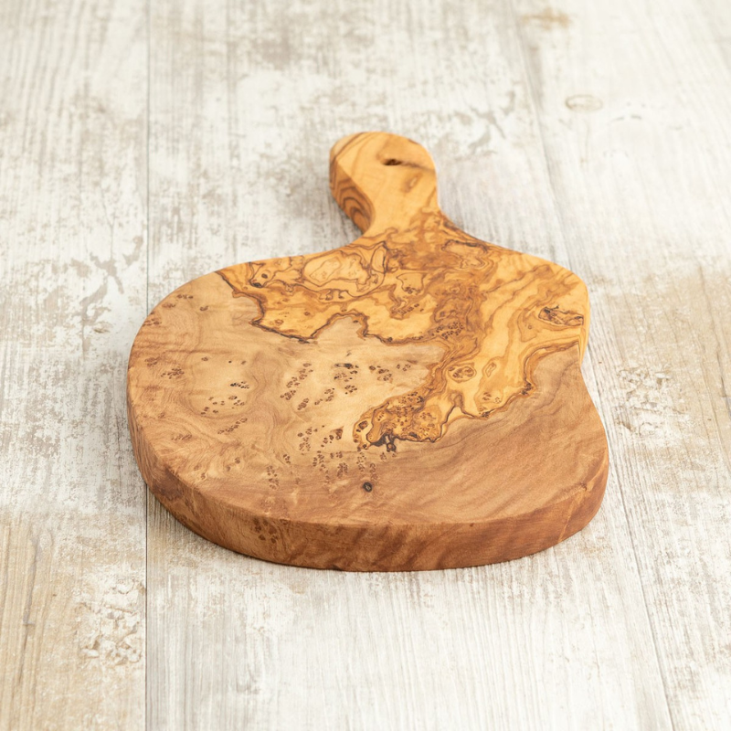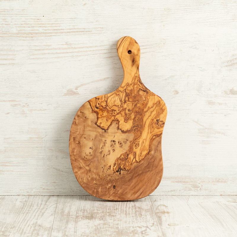 Óreglulegt bretti með handfangi úr gegnheilum ólífuvið.