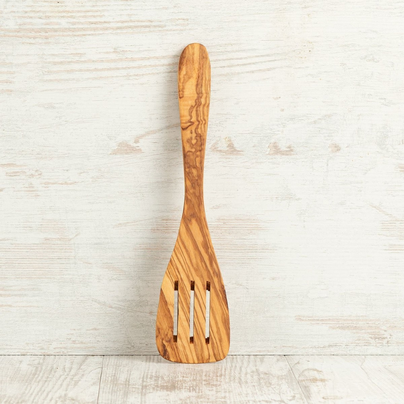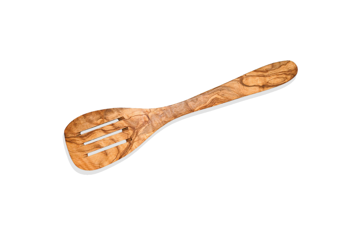 Viðarspaði með rifum úr gegnheilum ólífuvið.